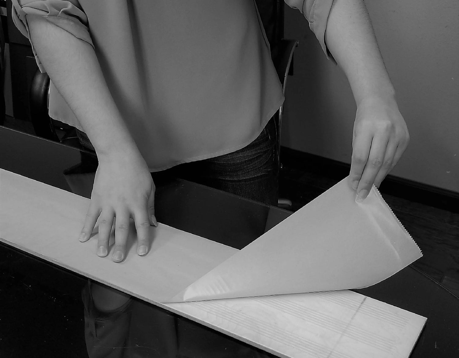 Tip 1: Do not adhere planks until they are placed in the right position. Once the material is adhered to the wall, it will be very difficult to reposition.