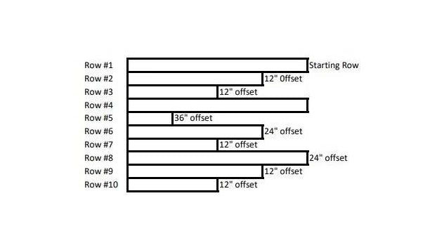 Now that your level starter row is in place, stagger the end joints as you work your way up and down the wall, so that your end joints do not match up from row to row. To accomplish this look and minimize your waste, use your cut off piece from one row to start the next row.